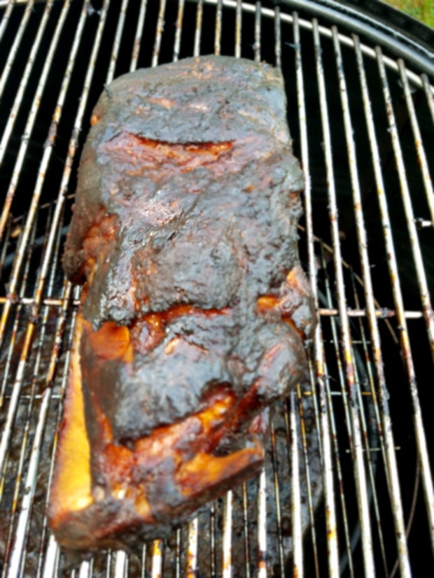 It was a successful smoke, albeit I’m still learning the ins and outs of the Weber Smokey Mountain. It ate up my Royal Oak charcoal (briquettes) pretty quickly, but the guys over at TVWBB (The Virtual Weber Bulletin Board) said that I didn’t use enough charcoal to fill the ring completely, and to try a different variation of the Minion Method. Their points were noted.